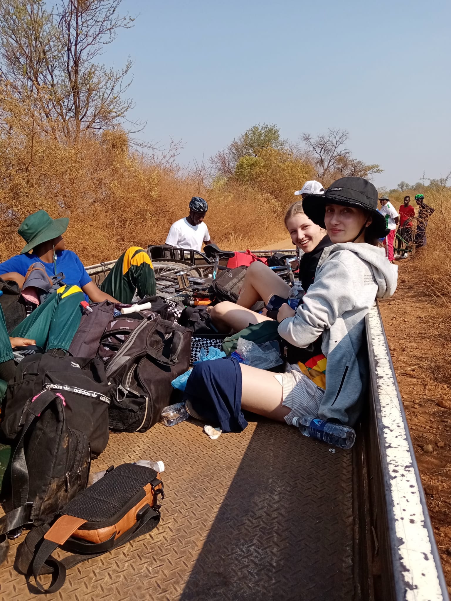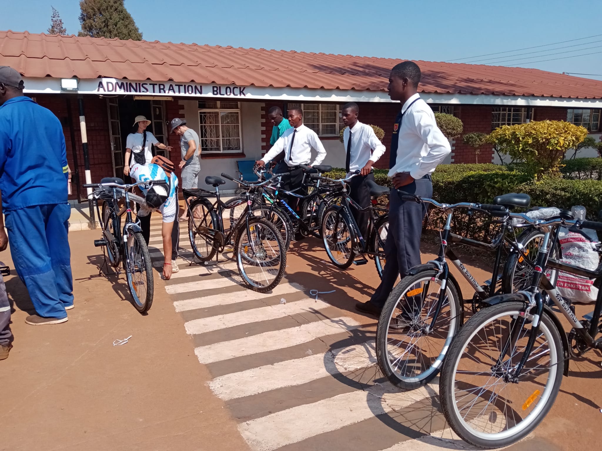 Bereits kurz nach fünf Uhr morgens machen sich 30 Jugendliche und mehrere Lehrkräfte bereit. Die ersten 15 Radfahrer*innen starten auf die 40 km lange Strecke. Die holprigen Sand- und Steinpisten zu Beginn fordern sowohl Kondition als auch Durchhaltevermögen heraus – und das Reparaturteam um Herrn Acar und Ahmed aus der Fahrrad-AG ist im Dauereinsatz. Unter der Leitung von Herrn Duda erreicht die Gruppe schließlich mit nahezu allen Fahrrädern die Stadtgrenze von Gweru.